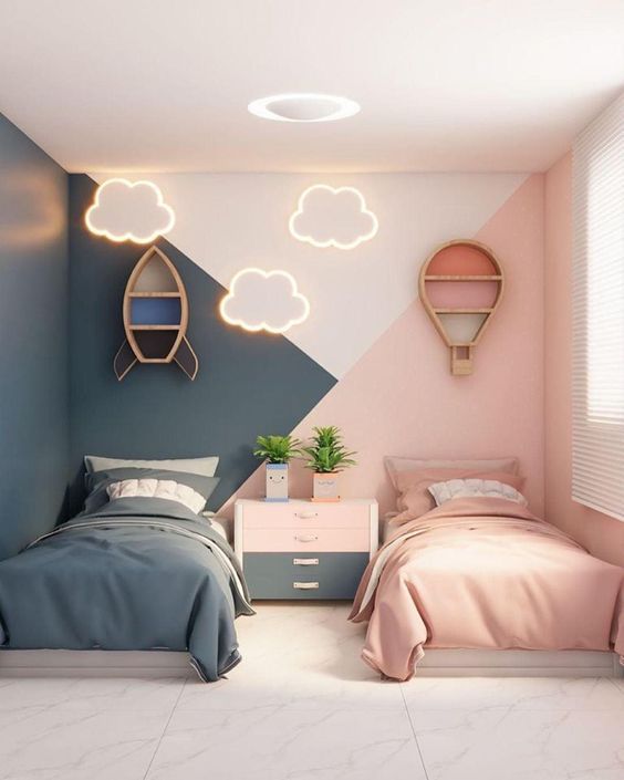 Blue is one of the most recommended colors for children’s rooms, especially for kids who tend to be active or easily overstimulated. Soft, light blues mimic the feeling of open skies and calm water, helping to create a peaceful environment. This color promotes relaxation, supports better sleep, and encourages a sense of security.